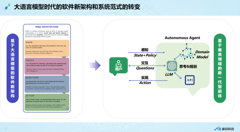 大型模型实际上代表了技术的平等,它让自然语言处理的能力“平民化”。对于像澜码这样的初创公司来说,我们就可以像OpenAI一样,将300人的自然语言处理团队视为公司内部的资源,直接利用。它所带来的一个变化是,在软件的边界上变得更加灵活,可以使用自然语言进行交互。